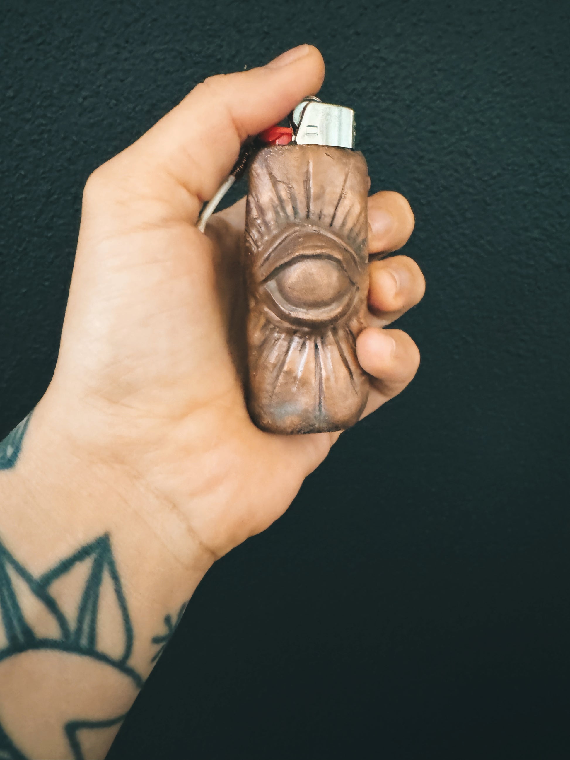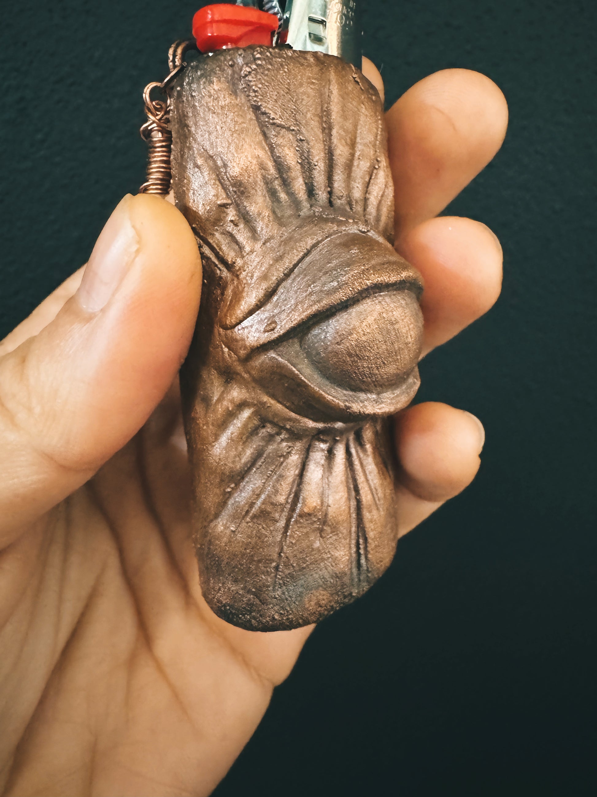Jede Hülle wird von mir in Handarbeit gefertigt, liebevoll modelliert und mit echtem Kupfer überzogen. Das zentral eingearbeitete Auge symbolisiert Schutz, innere Klarheit und eine wache Präsenz – wie ein stiller Begleiter, der über dein Feuer wacht.