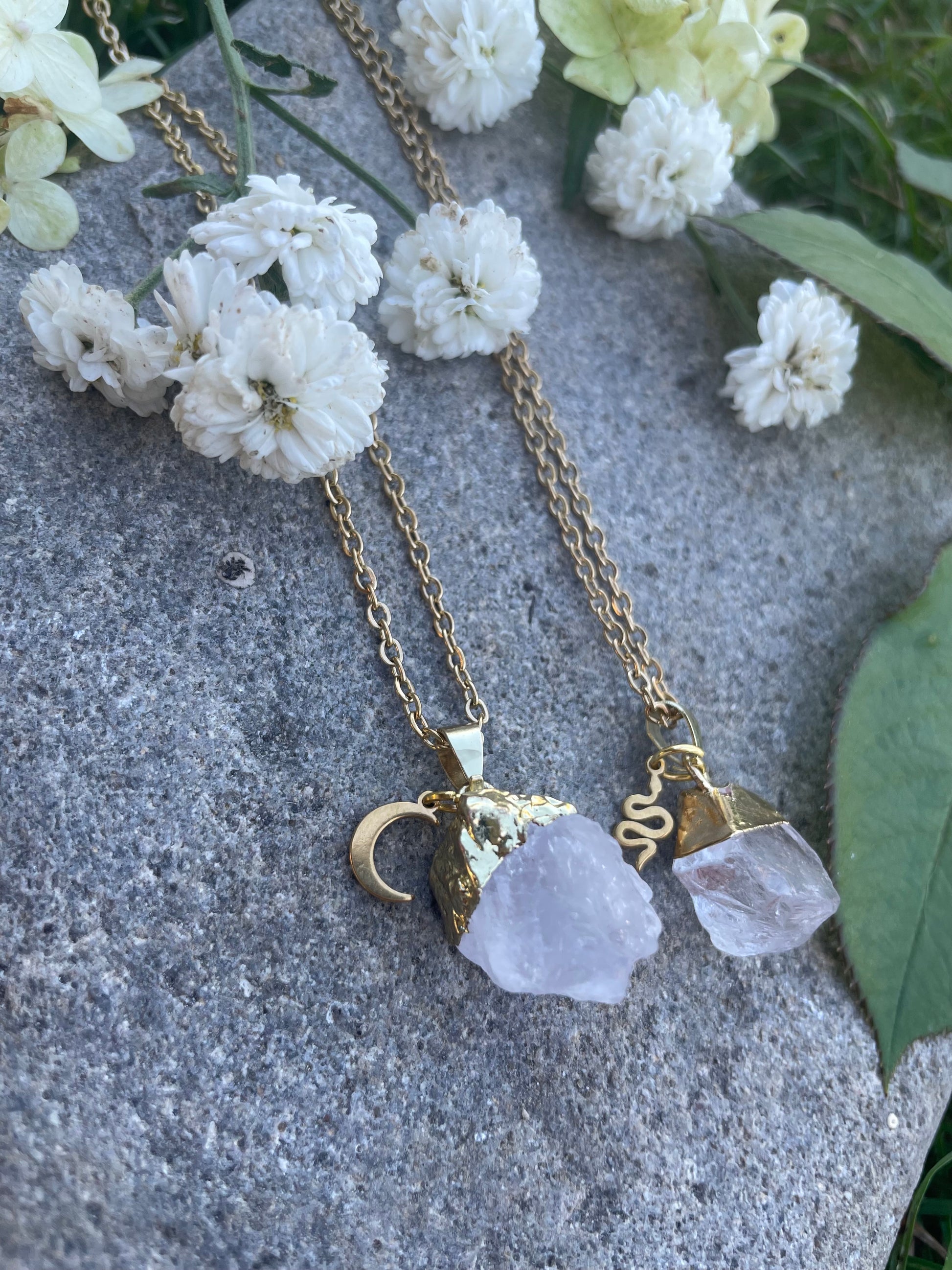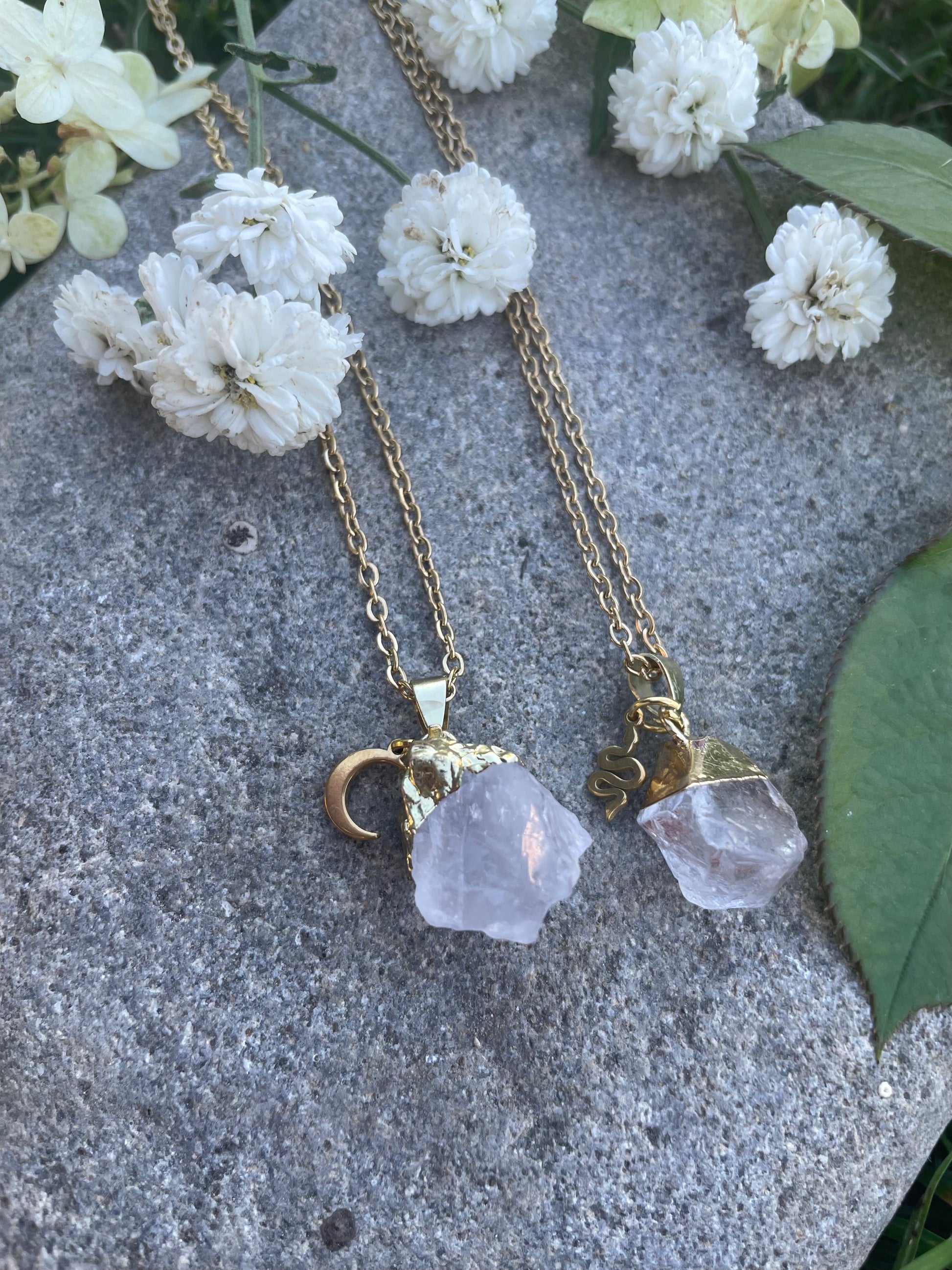 Bergkristall Kette (roh, gold)