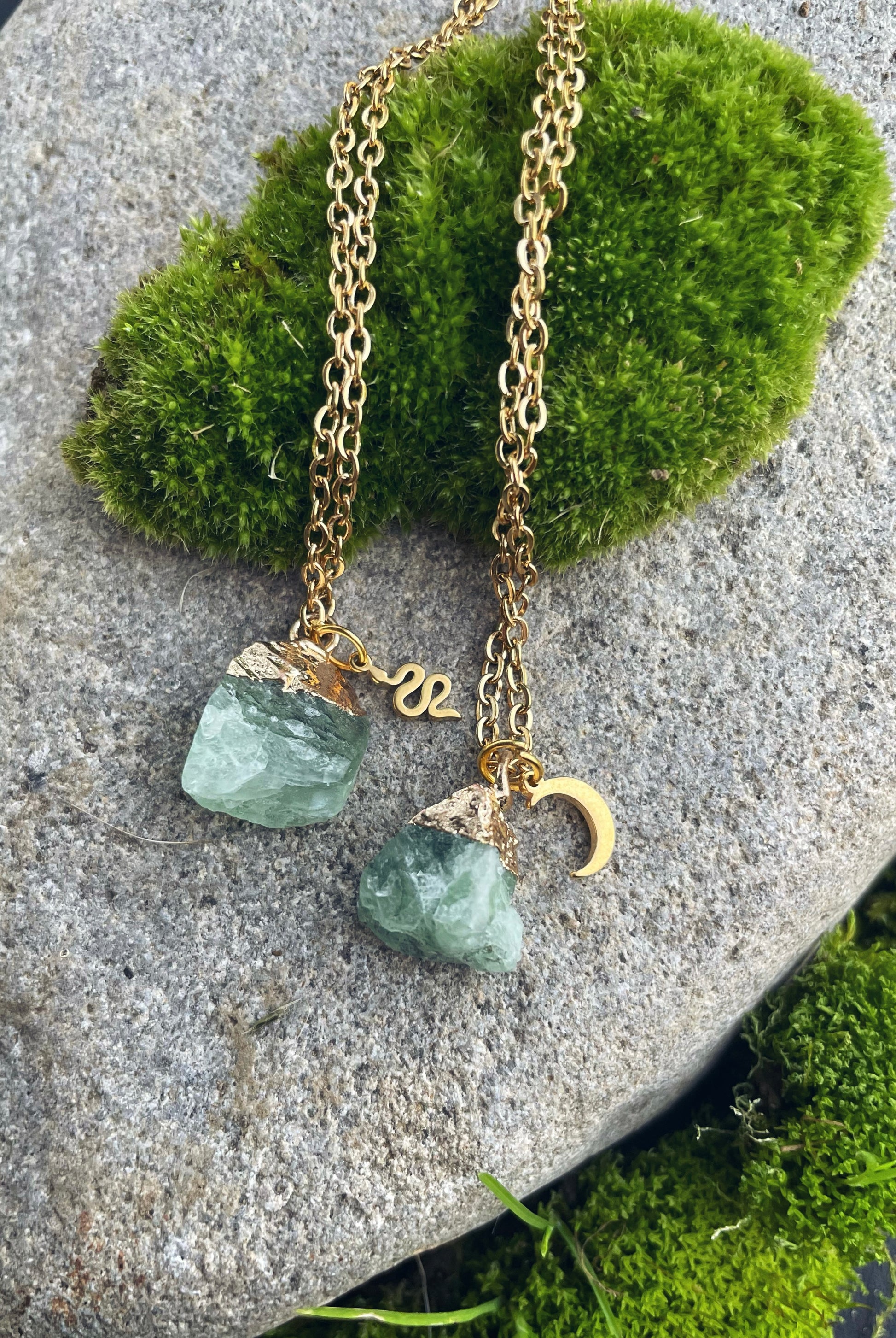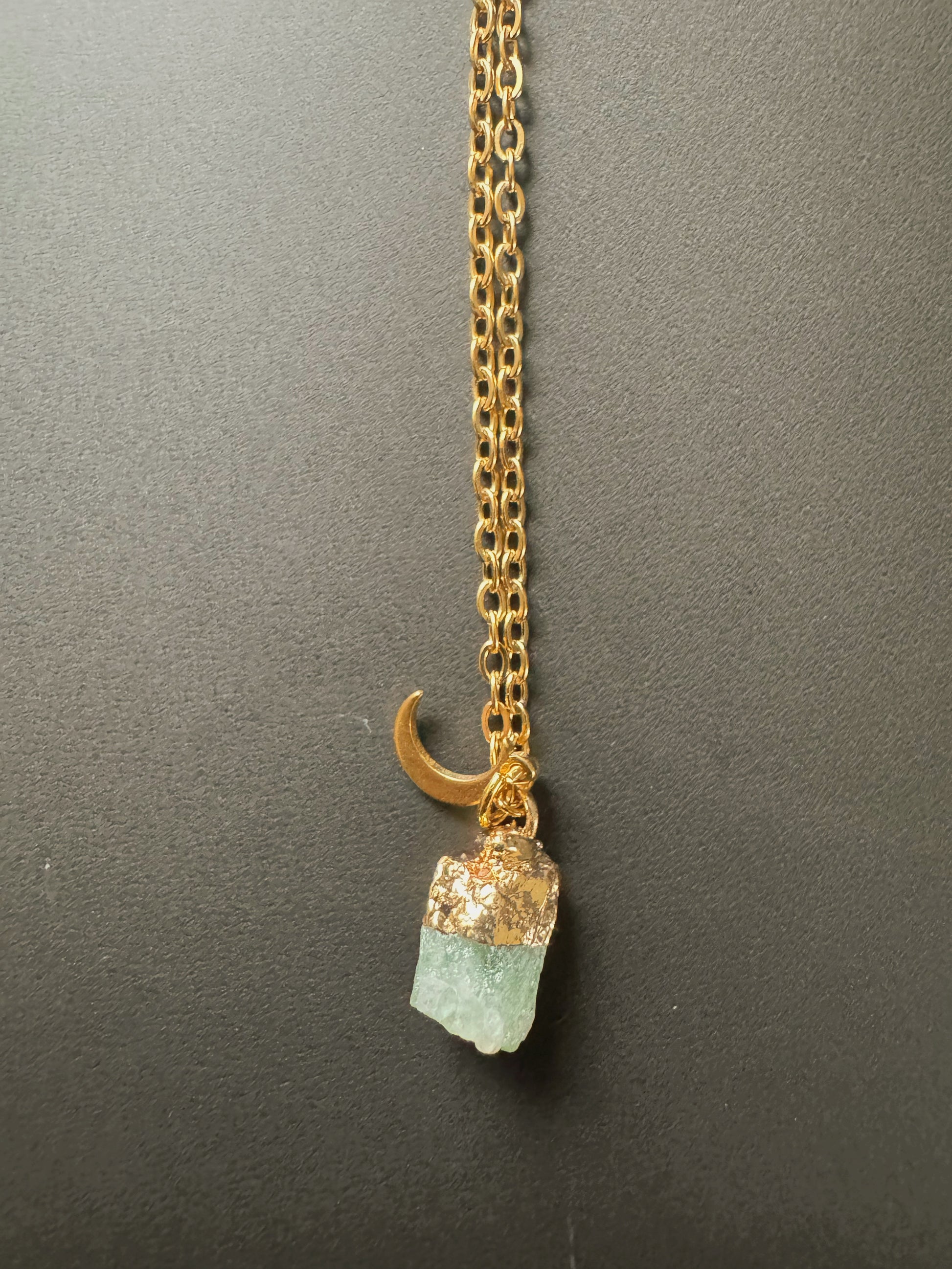 Grüner Fluorit Kette (roh, gold)