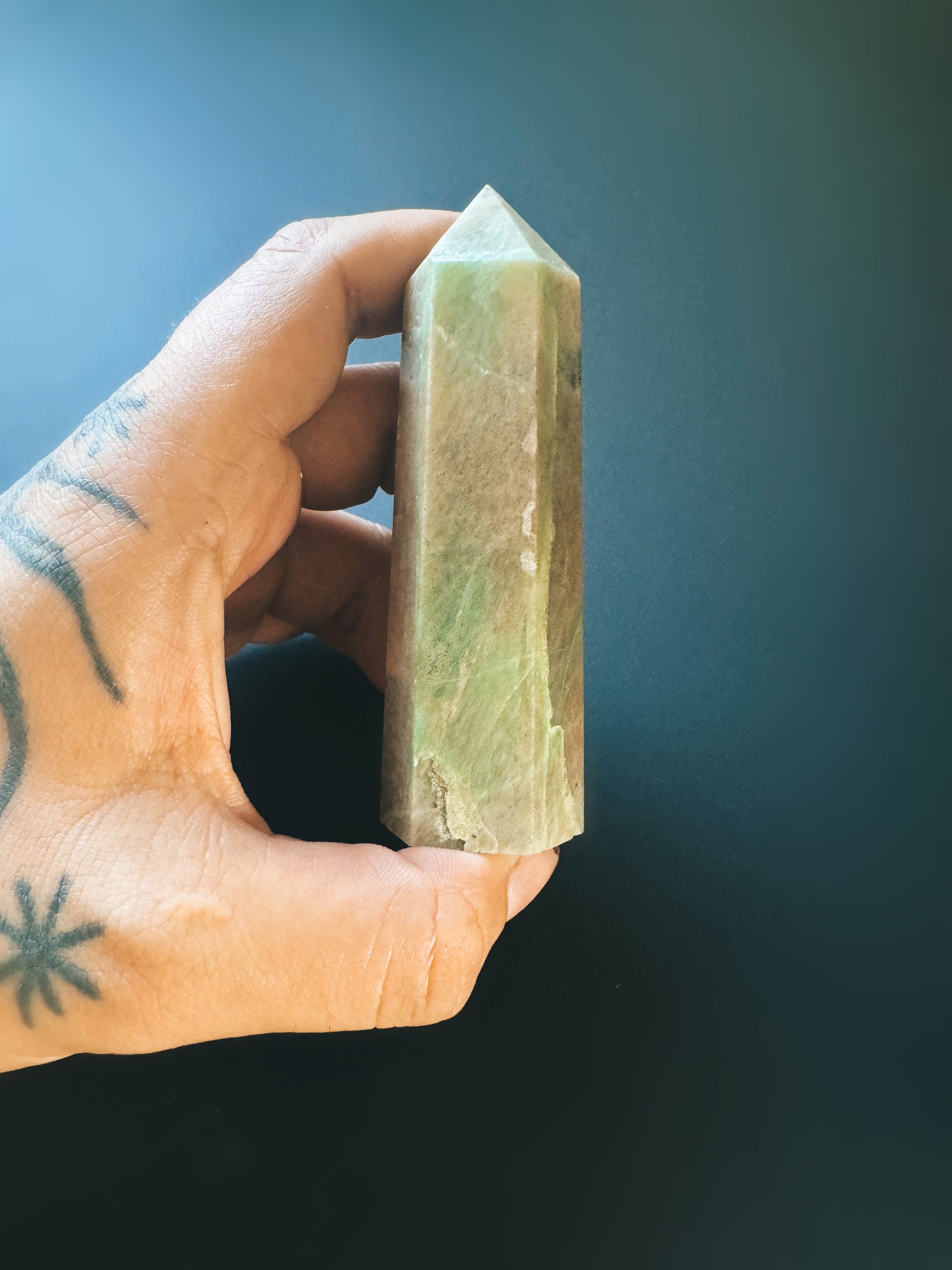 Der Grüne Mondstein (Garnerit) ist eine seltene Mondsteinvariante. Neben den allgemeinen Qualitäten des Mondsteins trägt dieser grün-graue Stein speziell dazu bei, Liebe und Mitgefühl zu entwickeln. Eigenschaften, die mit dem Herzchakra verbunden sind.