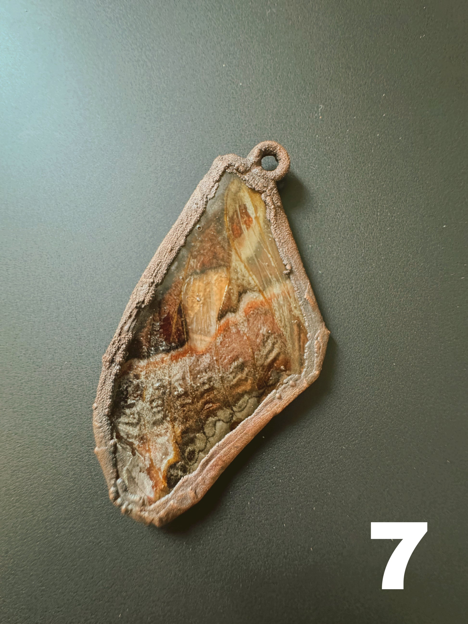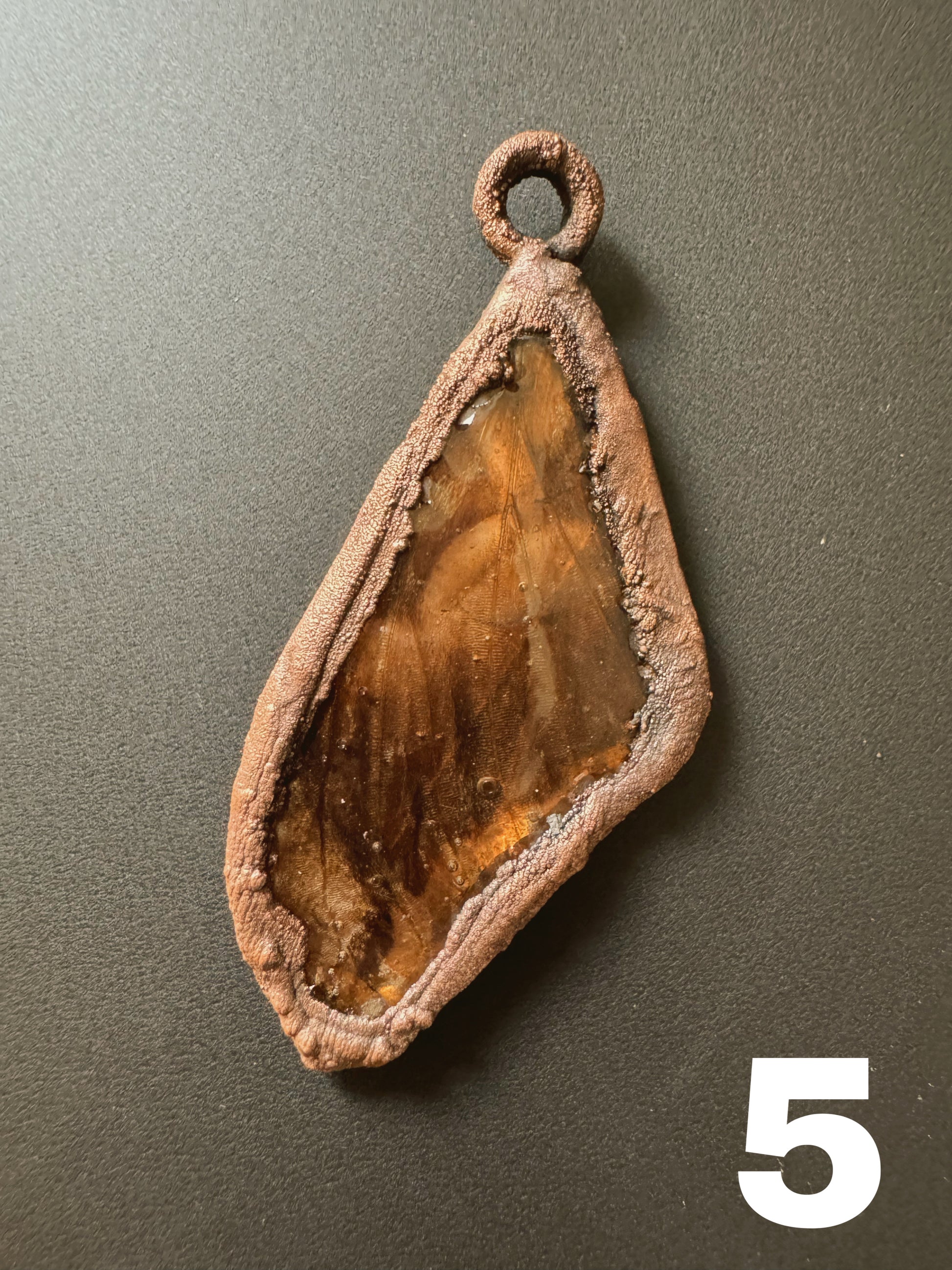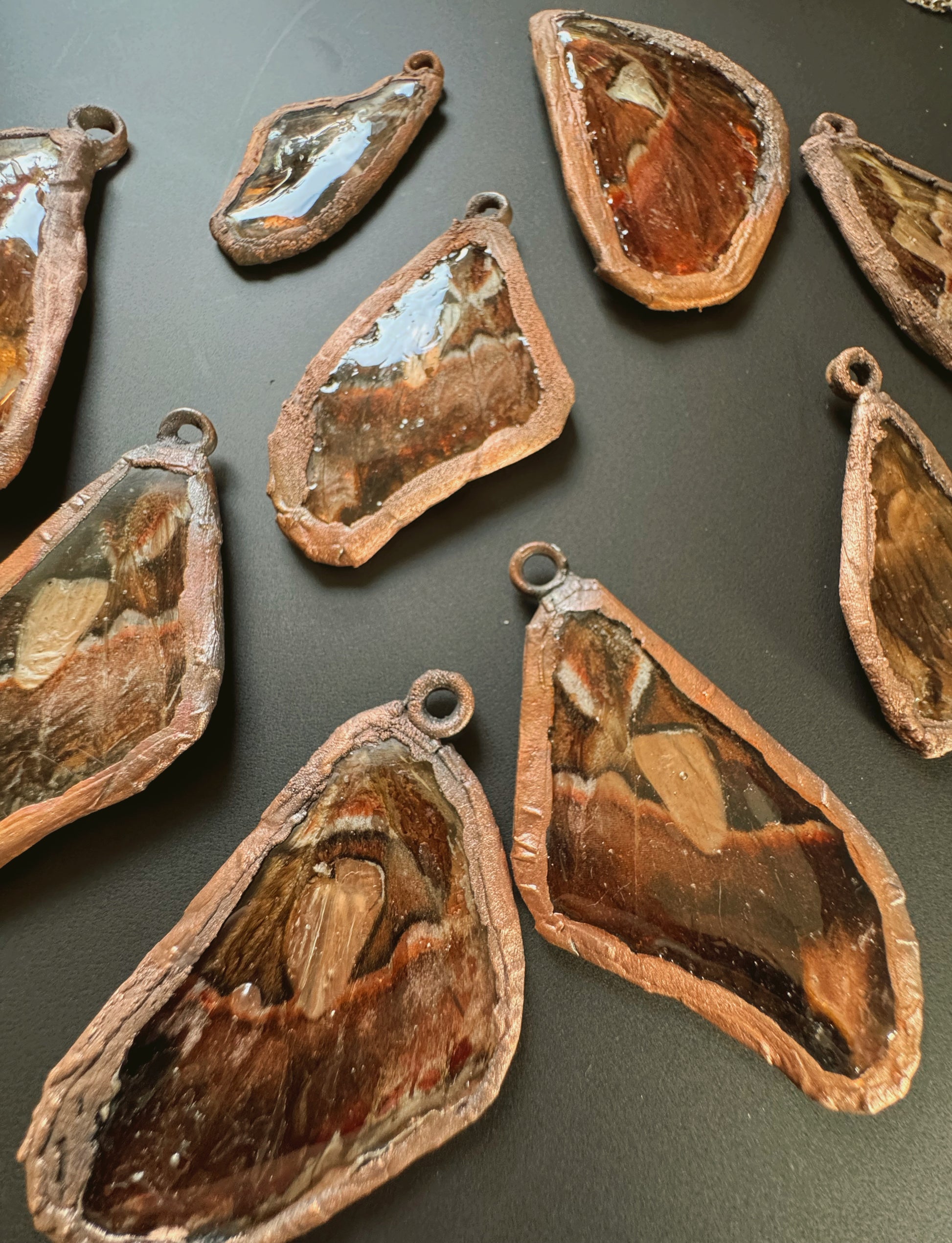 Leider ist es bei vielen gekauften Präparaten üblich, dass Falter absichtlich frühzeitig getötet werden, sobald sie frisch geschlüpft sind – nur um makellose Flügel zu erhalten. Genau das möchte ich mit meiner Kunst vermeiden. Meine Anhänger entstehen ausschließlich aus Flügeln von Faltern, die ihren natürlichen Zyklus vollendet haben.