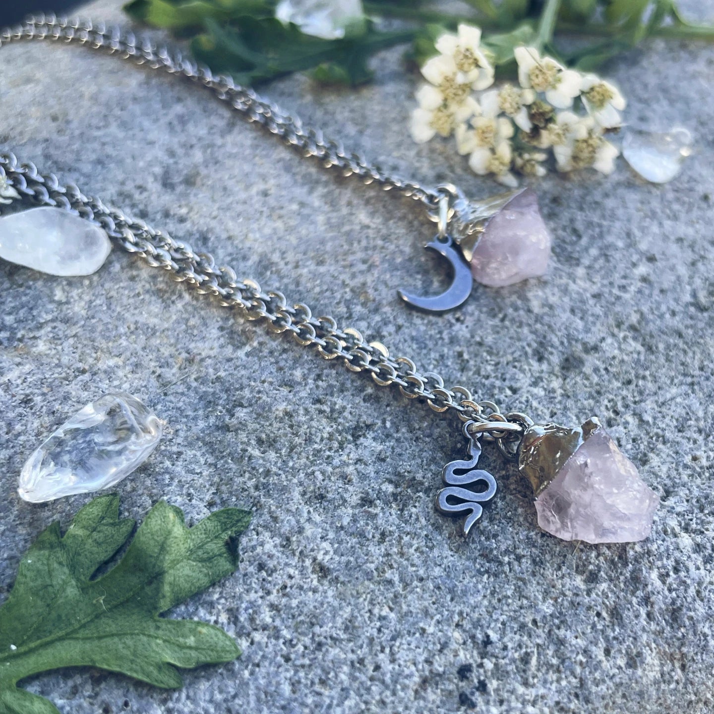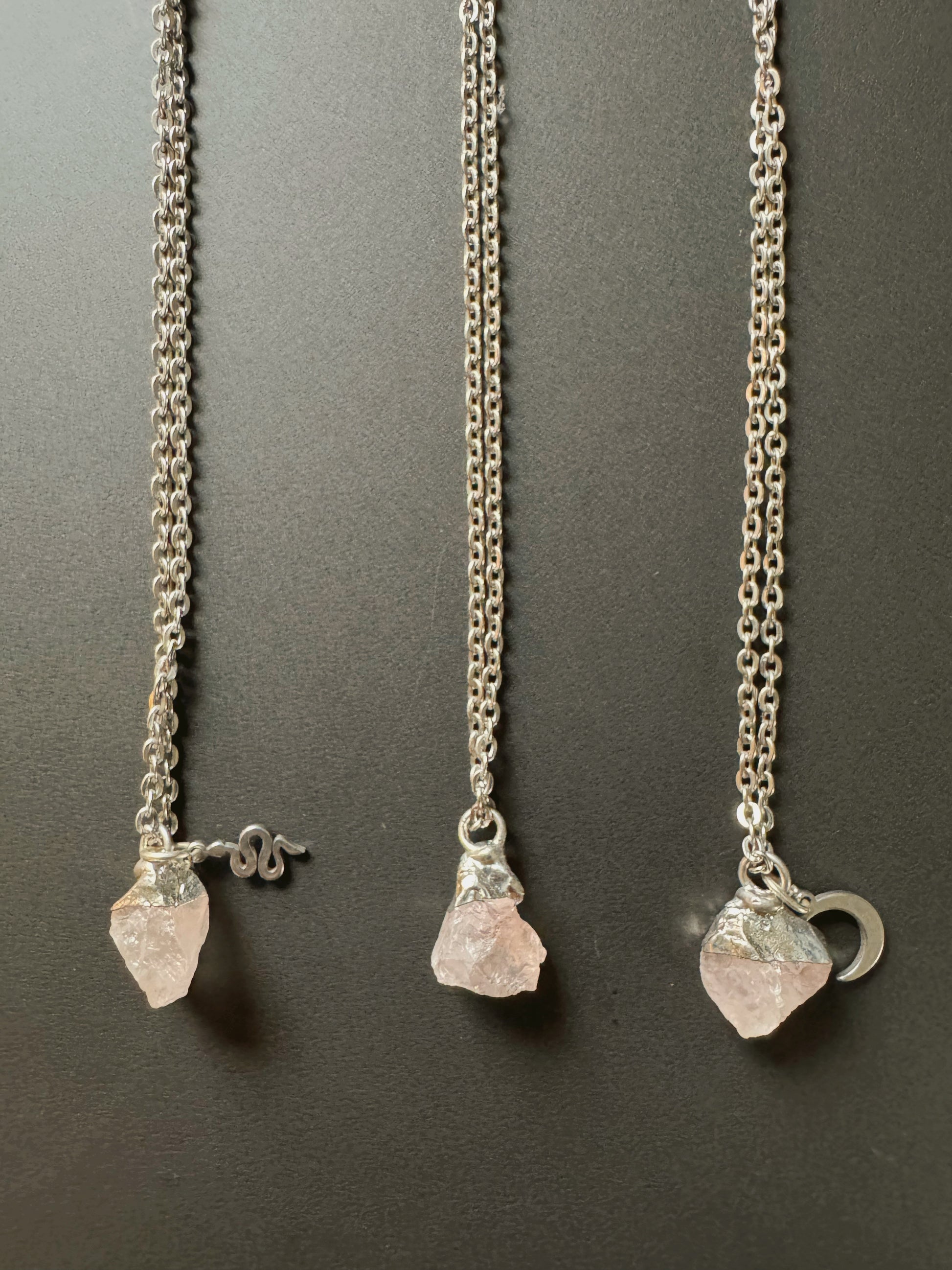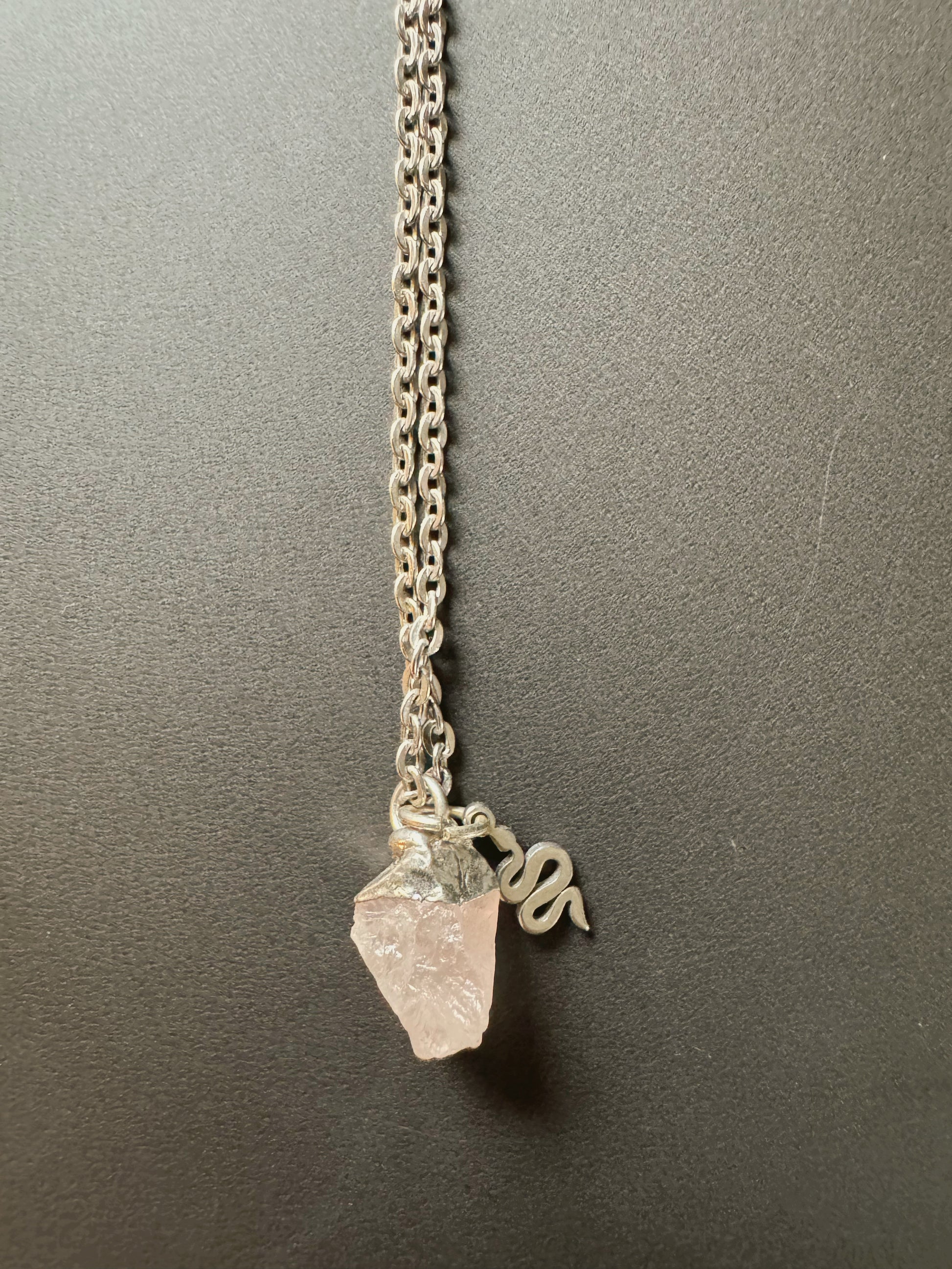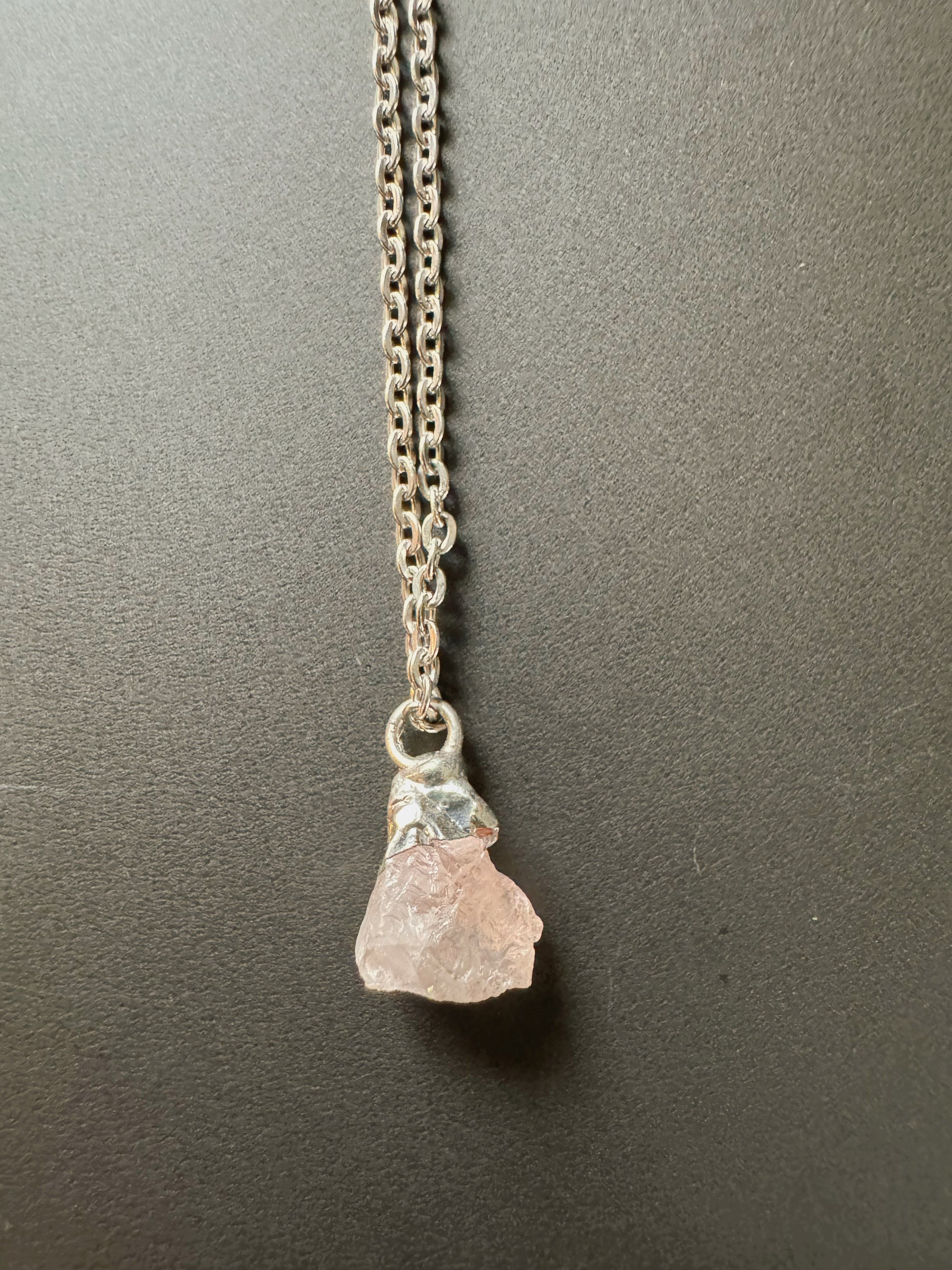 Rosenquarz Kette (roh, silber)